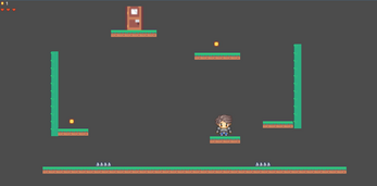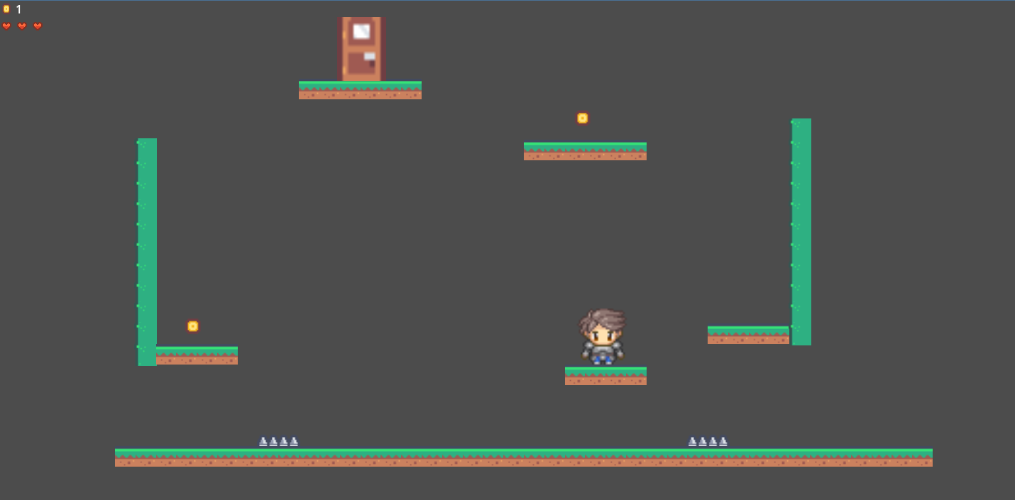 Features smooth dash, wall-slide/wall-jump, double-jump, coyote-time jumps, coin pickups with HUD, spike hazards with health-hearts — everything wired and tunable via exported variables.